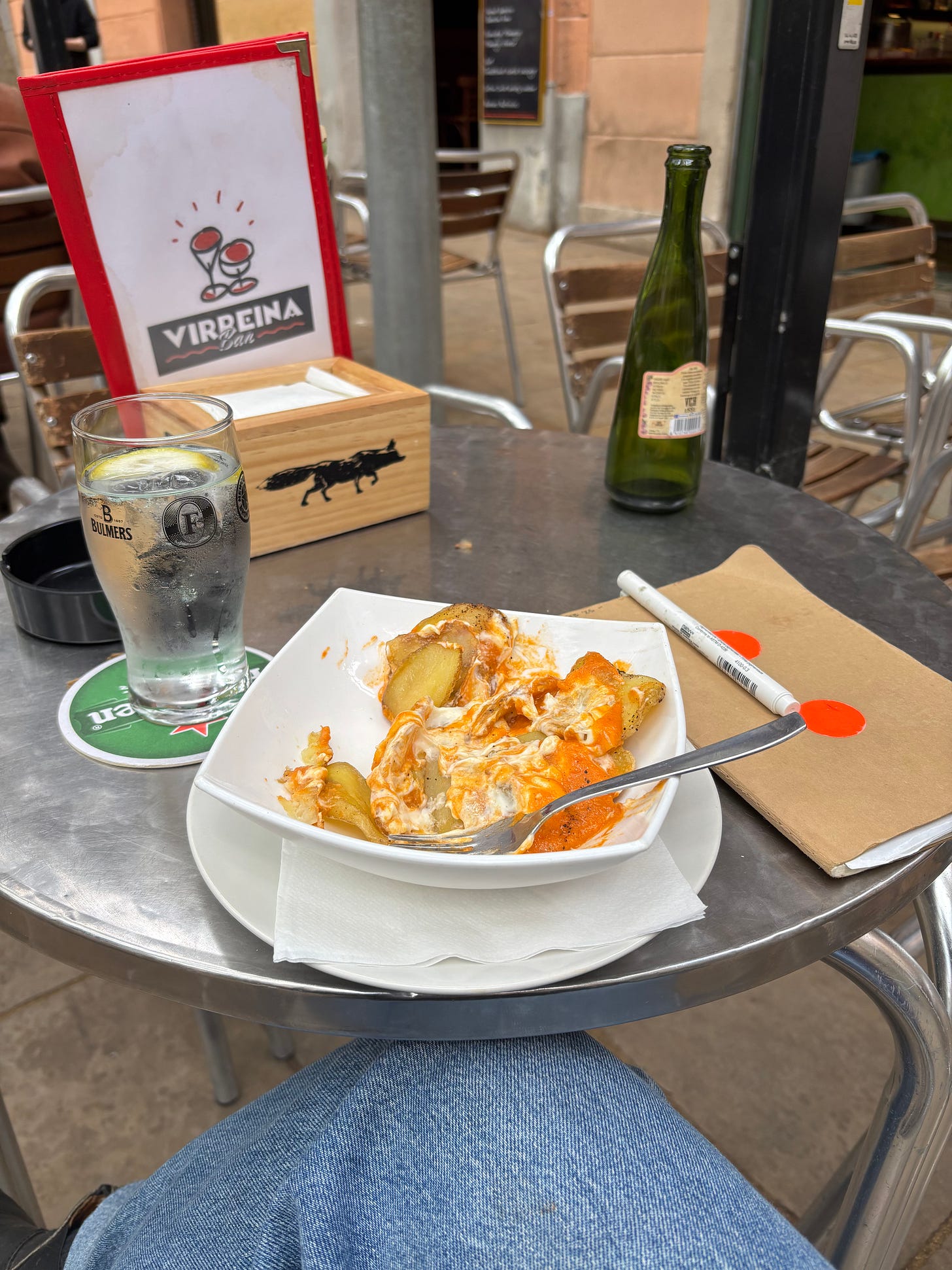 On my last full day, I mustered up all the motivation I could to go back into the tourist zone and see La Sagrada Familia. Tickets to go inside had been sold out for weeks, but I will say, the exterior was mindblowing enough to JUST outweigh the low grade boiling anxiety that was building in me from navigating the crowds. The Gaudi masterpiece was really freaking impressive, but I do not have anything poetic to say about it. Unfortunately, being in Barcelona made me consider revisiting my undergrad thesis which was centered around the topic of over-tourism. That night, I met up with Ege again. He had a friend coming to visit from Texas and I assumed it would be someone near our age, but it ended up being a dude in his mid 40s who Ege used to work with. A bit thrown off, I decided to roll with it anyways. This guy, who’s name is not worth remembering, let’s call him Texas Joe, was your classic entrepeneur who moved to Europe to take advantage of different tax laws to start multiple businesses, one being an unaccredited university that seemed like the equivalent of a University of Phoenix situation to me. The more I got to know Texas Joe the less and less I liked him, but he paid for a rather nice dinner and drinks so I tried to remain polite. Texas Joe lives in the south of France, but his wife and children live in Lebanon, and as the night went on his voice changed from an annoying southern twang to a slightly slurred middle eastern accent. At this point I was fed up with the guy bragging about his wealth and all the frequent flyer miles he’s accumulated, and I had drank enough beers to say something. My method of picking a fight with him was to ask if he ever considered his impact on the environment or using his wealth for something good, to which he immediately went on the defensive saying that if I could present him with a profitable way to save the planet he would *love* to give a shit. I don’t remember the intricacies of the argument from that point, but Ege informed me the next day that we really got into it. I… did not give a fuck. So my last night Barcelona was kind of a bust, but at least it made it easier to leave! In the morning, I ate one last serving of patatas bravas and arrived at the airport entirely too early. I spend a lot of my time in Barcelona feeling like humans are a plague on this beautiful planet, which believe it or not, is not my favorite headspace to be in! So unfortunately unless you are somehow way less sensitive to throngs of tourists crowding around beautiful historical monuments experiencing it all with phones in front of there faces, I personally would not recommend Barcelona.